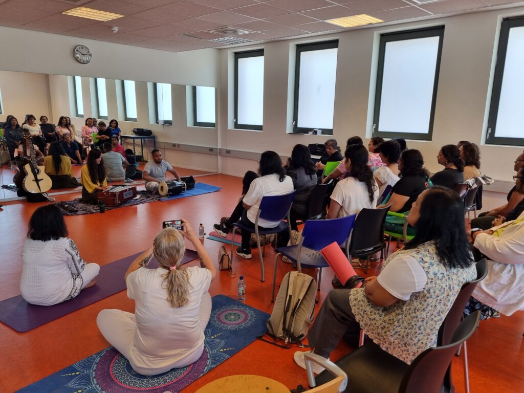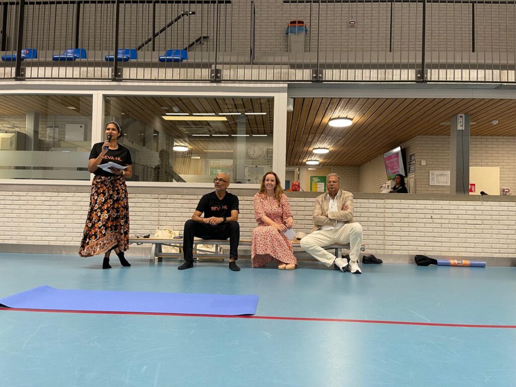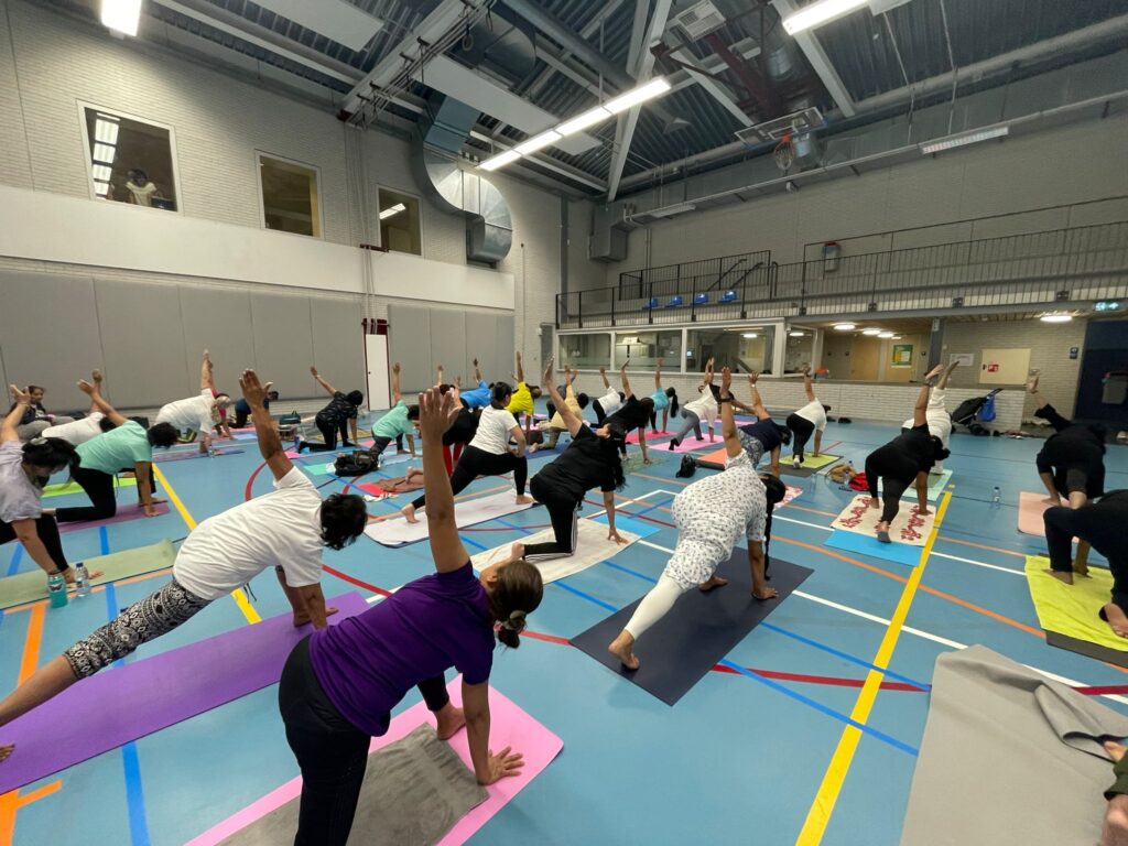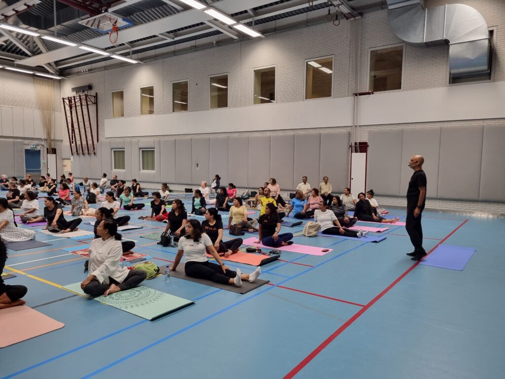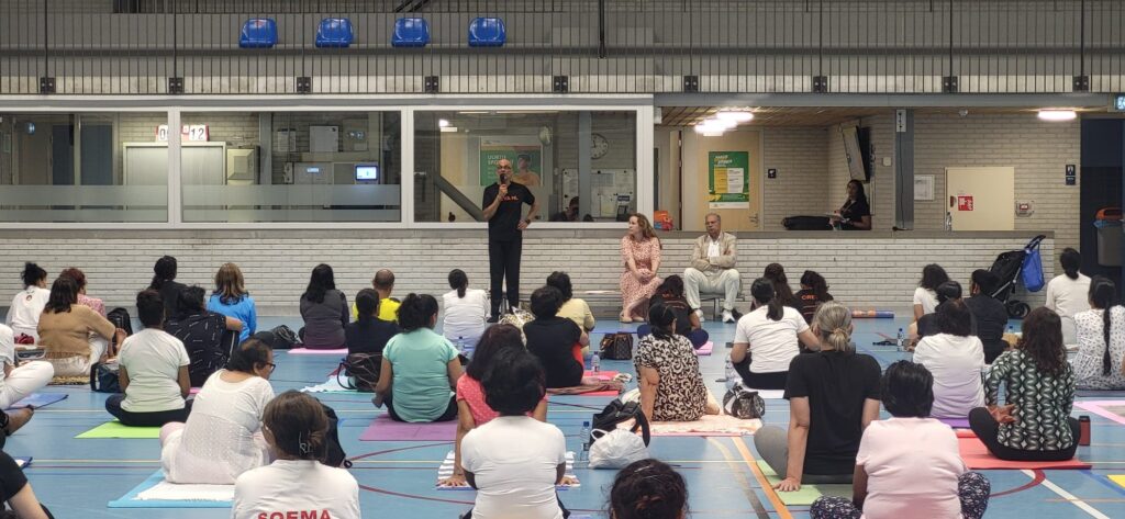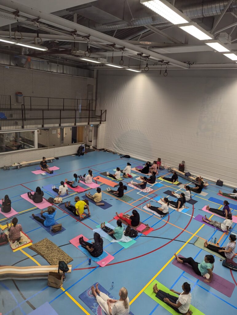 Op zaterdag 29 juni 2024 organiseerden we een Yoga evenement ter gelegenheid van Internationale Yoga Dag. Dit vond plaats in Sporthal Piet Vink in Den Haag van 11.00 tot 16.00 uur. Er werd ook stilgestaan bij 10 jaar Community Yoga in Den Haag. Dhr. Rabin S. Baldewsingh (Nationaal Coordinator tegen Discriminatie & Racisme) en mevrouw Marion Beaujean (stadsdeeldirecteur van Leidschenveen-Ypenburg) waren bij de opening aanwezig en namen een exemplaar van het gedenkboekje (‘10 jaar Community Yoga in Den Haag‘) in ontvangst. Daarna nam Yograj Premacharya het woord en vertelde wat over Community Yoga en gaf achtereenvolgens ook een yoga workshop. Na de lunchpauze met onder andere een lekker vegetarisch broodje en fruit begon workshop ronde 2 waar Janice Aliar een joints & glands sessie gaf en Reeshmi Chitan een stoelyoga sessie. De laatste workshop was voor Geoffrey de Jong met een sound bath sessie en Lakshman Kharagjitsing met een kirtan workshop. Bij vertrek kregen de deelnemers een leuke goodiebag mee. Het was een geslaagde dag met ruim 100 deelnemers en een enthousiast Seva team dat de dag in goede banen geleid heeft. Iedereen wordt bedankt voor zijn/haar aanwezigheid, ook de sponsoren worden van harte bedankt en we gaan van start met de voorbereidingen van een spectaculair Yoga Festival op 21 juni 2025! Graag tot dan! ![]()