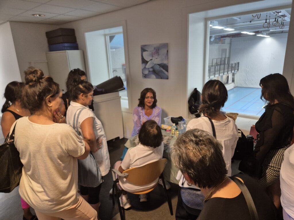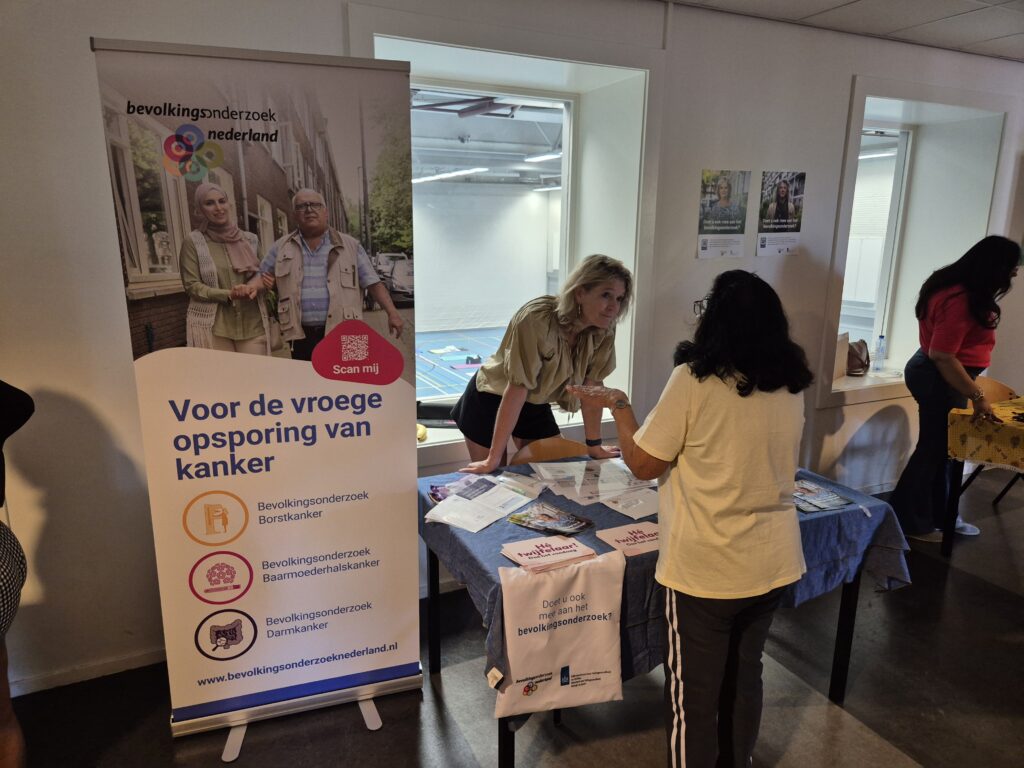 Tijdens de lunchpauze konden de deelnemers genieten van een vegetarisch broodje en fruit en ondertussen konden ze langslopen bij enkele kraampjes waar onder andere hand- en hoofdmassages werden gegeven en waar voorlichting werd gegeven over het belang van bevolkingsonderzoek en over regressietherapie.