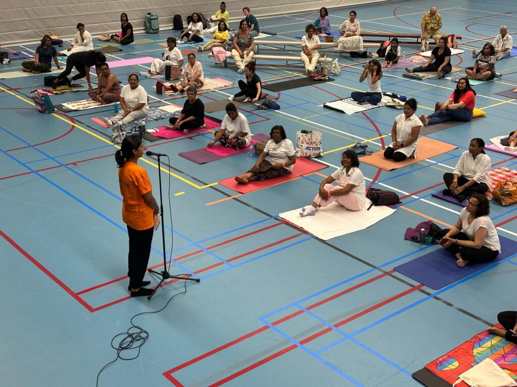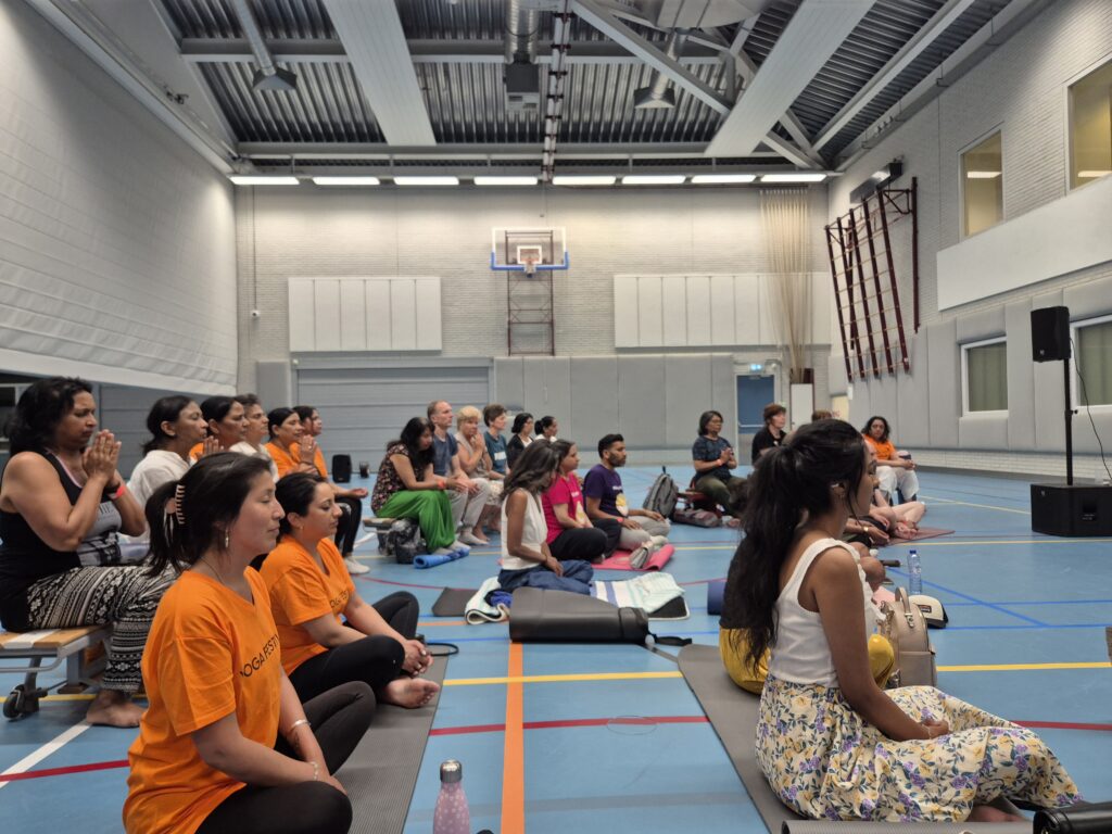 Op zaterdag 21 juni 2025 organiseerde Seva NL een Yoga Festival ter gelegenheid van Internationale Yoga Dag. Dit vond plaats in Sporthal Piet Vink in Den Haag van 11.00 uur tot 21.00 uur. Na een openingswoord door Janice Aliar, heette voorzitter Yograj (en initiatiefnemer van het project Community Yoga) iedereen welkom. Hij vertelde hoe het project in 11 jaar groeide van één wekelijkse les naar acht lessen per week in meerdere wijken, verzorgd door zes docenten. Yograj benadrukte dat yoga voor iedereen toegankelijk moet zijn, ongeacht leeftijd, fysieke conditie, achtergrond of inkomen, en verzorgde vervolgens de plenaire sessie “toegankelijke yoga voor iedereen”.